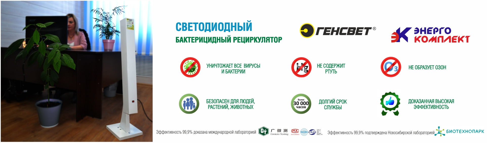 Особое внимание стоит обратить на светодиодный бактерицидный рециркулятор, уничтожающий все вирусы и бактерии и полностью безопасен для людей, животных и растений. Рециркулятор не содержит ртуть и при работе не образует озон, доказав свою эффективность на 99,9% проверкой в медицинских лабораторях.