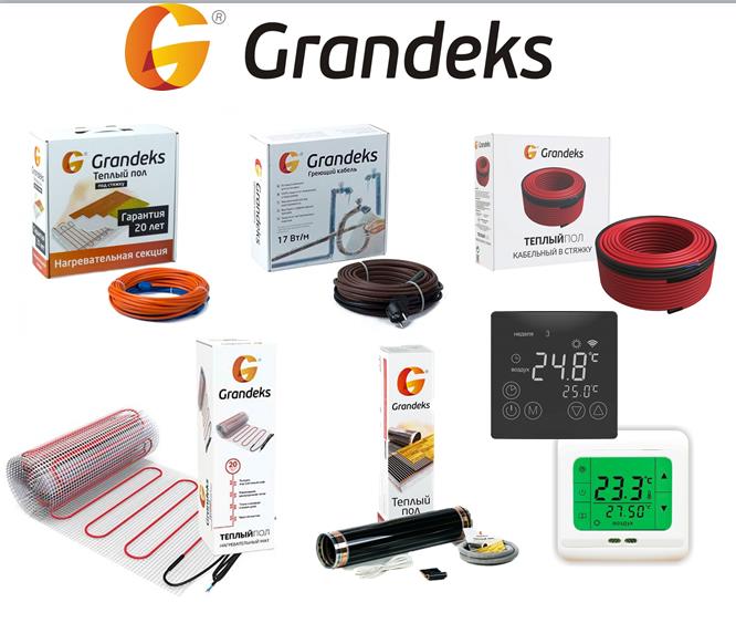 Торговая сеть "Энергокомплект" предлагает кабельные системы обогрева «Grandeks» для бытового и промышленного назначения. Они разработаны с учетом самых последних достижений в области безопасности и экономии электроэнергии. Сделать теплой любую напольную поверхность помогут теплые полы Грандекс. Нагревательный мат Grandeks (термопленка) имеет матовый клеевой слой и высокую температуру плавления, отличается устойчивостью к температурным перепадам и прочностью. Прекрасно подходит для утепления спален, гостиных, кухонь, прихожих и т. д. Многие модели являются идеальным теплым полом под ламинат, паркет, линолеум или ковролин.