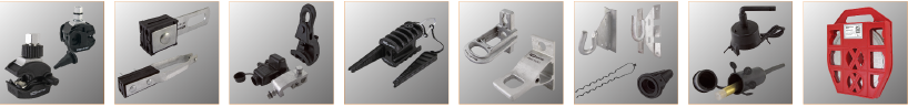 Зажимы герметичные ответвительные прокалывающие серии ЗГОП; зажимы герметичные для отвлетвления от неизолированного проводника серии ЗГОНП; зажим ответвительный влагозащищенный прокалывающий с раздельной затяжкой болтов серии ЗОВРЗБ; зажимы плашечные серии ЗП; зажим анкерный абонентский серии ЗАБ; зажим анкерно-поддерживающий серии ЗАП; зажим анкерный серии ЗАM; поддерживающие зажимы серий ЗПП и ЗПС; зажимы анкерные клиновые серии ЗАК; комплект промежуточной подвески серии КОПП; промежуточные зажимы серии ЗПН; кронштейны анкерные серии КАБ, КАМ; крюк монтажный серий КМ, КМУ, КМС; фасадное крепление серии КФК; лента монтажная серии ЛМ; скрепа-бугель усиленная серии СУ; колпачки изолирующие серии КИ; адаптор для закороток и заземления серии АЗЗ; изолированная скоба серии С200; ограничитель перенапряжения серии ОПН 280; корпус предохранительной вставки серии КПВ; вязка спиральная изолированная серии ВС; инструмент для натяжения и резки монтажной ленты серии ИНЛ