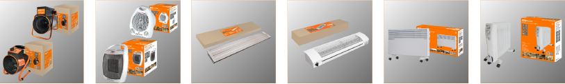 Тепловые завесы ЗТС; тепловые пушки ТПК; тепловые пушки ТПК-К; тепловентиляторы ТВ; тепловентиляторы серии ЭКО; инфракрасные обогреватели ИК; термостаты накладные открытого монтажа НТ; масляные обогреватели МО; электрические конвекторы ЭК