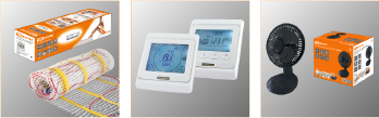 Вентиляторы напольные ВП, настольные ВС; маты нагревательные серии "Комфорт"; термостаты для теплых полов ТТП, ТТПЭ; нагревательный саморегулирующийся кабель "Стоплёд"