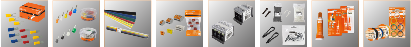 Силовые кабельные наконечники и гильзы; изолированные наконечники и гильзы; соединительные клеммы, колодки, зажимы; изделия для монтажа и маркировки кабеля; блоки зажимов; изоляционные материалы; клейкие ленты; муфты кабельные; трубки термоусаживаемые; изделия холодной усадки; термоусаживаемые изделия, компоненты и аксессуары кабельных муфт; средства идентификации кабельных линий и ограждения; клей