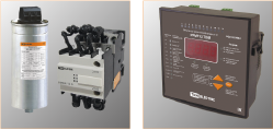 Конденсатор самовосстанавливающийся косинусный КПС-440; контактор для коммутации конденсаторных батарей серии КМНК; регулятор реактивной мощности РРМГ-12